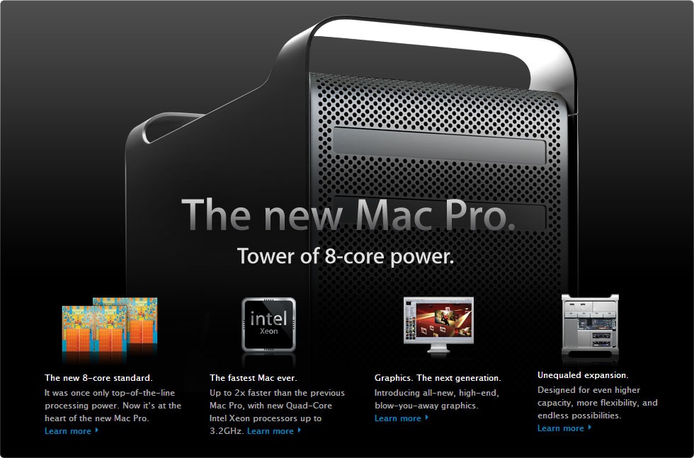 Mac-Pro-080708-Fastest-Mac- I don’t know, maybe it is just me getting AMF (Apple Marketing Fatigue), but they need to stop with the “Fastest/Best/Super-est Mac/iPhone/OS X/Single-Button-Mouse Ever” crap. Who really cares? Isn’t it a given that the new model of Apple’s fastest computer would be faster than the old one? What would people say if Dell said “The fastest Inspiron ever”?